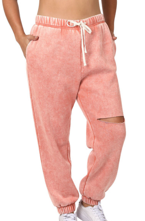 PLUS SWEATPANTS ACID WASH LASER CUT JOGGER WITH POCKETS