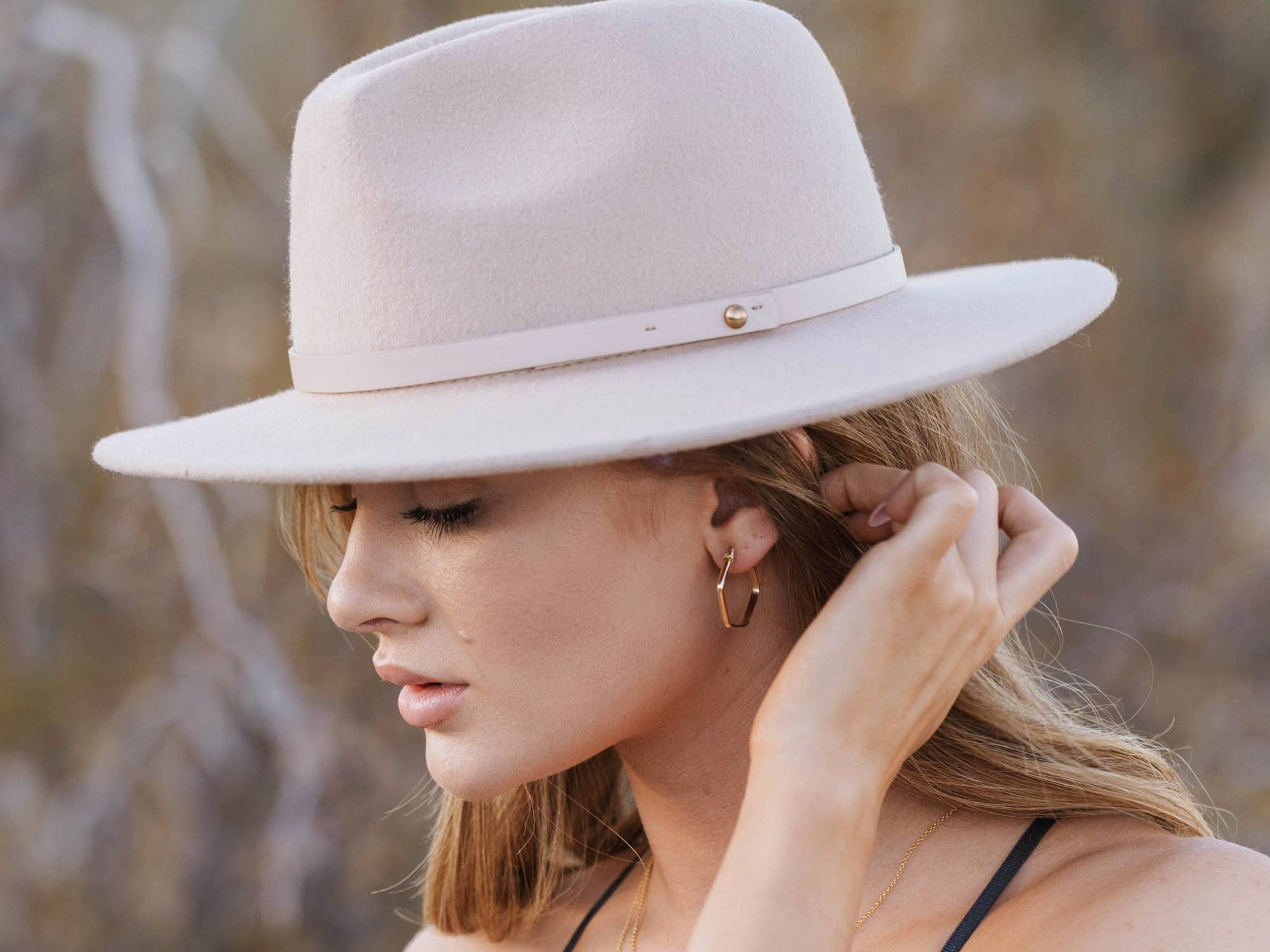 These gorgeous everyday hoops feature a modern open Hexagon shape, hand formed and polished to perfection. The hoops are drilled and finished with our signature wire wrapped posts adding just a tiny touch of style to an otherwise smooth and shiny surface. Sturdy yet lightweight, these hoops are sure to become an everyday favorite.
