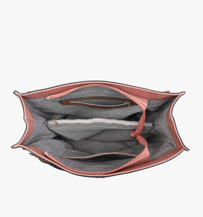- Features: Monogrammable, dual handles, top zipper closure, front pockets usable as mini conceal carry pockets, adjustable/detachable shoulder strap, back zipper pocket, inner zip and slip pockets