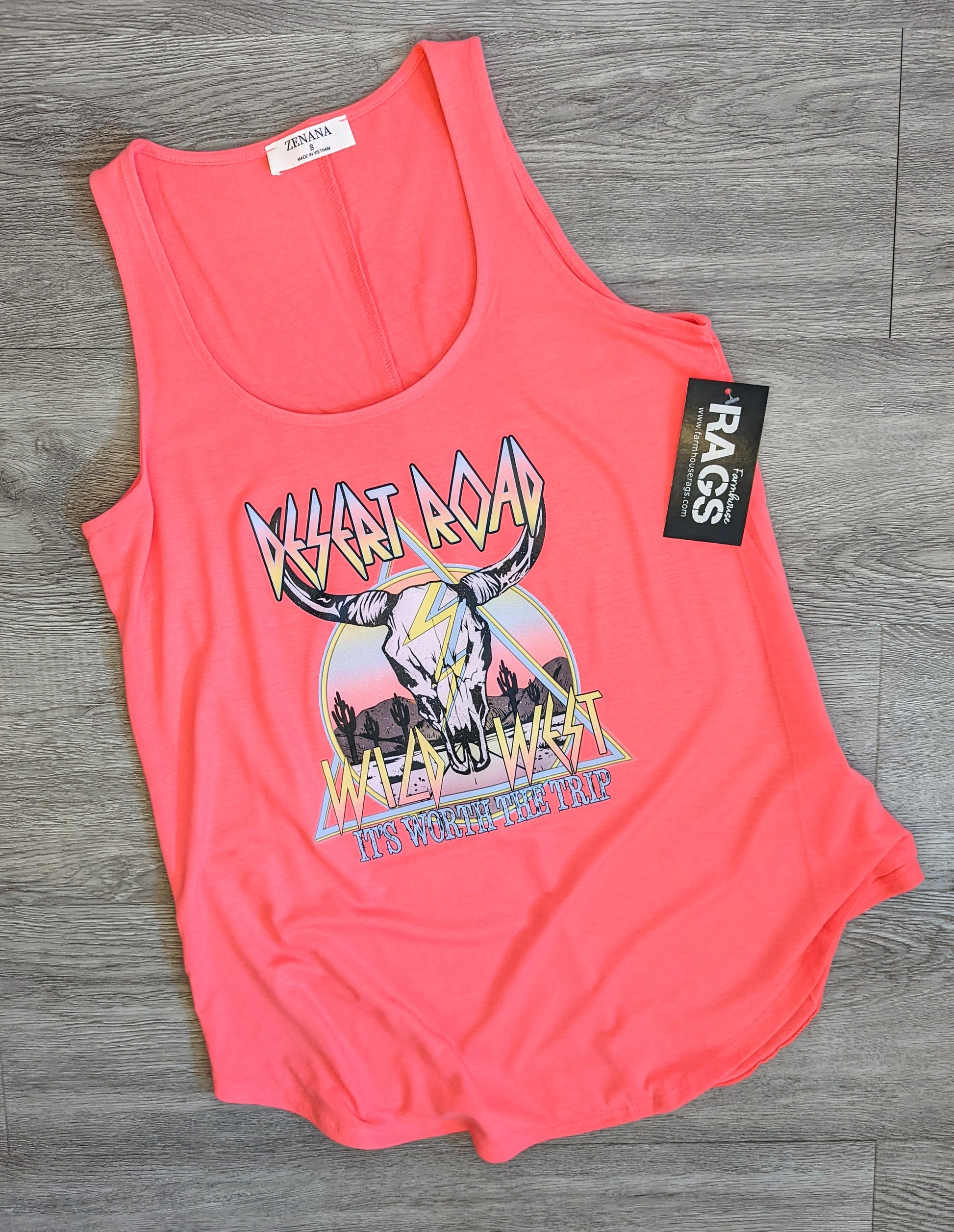 Wild West Desert Road Design on our favorite soft, flowy tanktop.