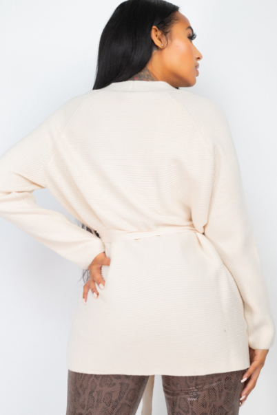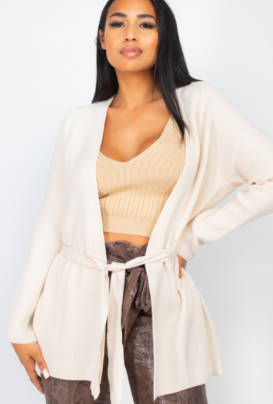 A self-tie belted sweater cardigan that radiates celebrity style with its elegant solid color and luxurious design. The long sleeves and drape shoulders create a cozy yet polished silhouette, while the open-front design adds a touch of effortless sophistication. Finished with a waist-length cut and a self-tie belt, this cardigan offers versatility and a chic, figure-flattering look perfect for elevating any outfit.