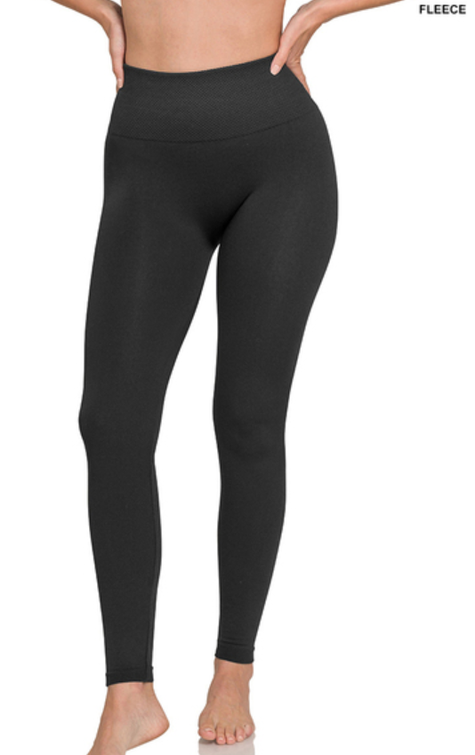 HIGH WAIST DIAMOND SHAPE BAND FLEECE LEGGINGS