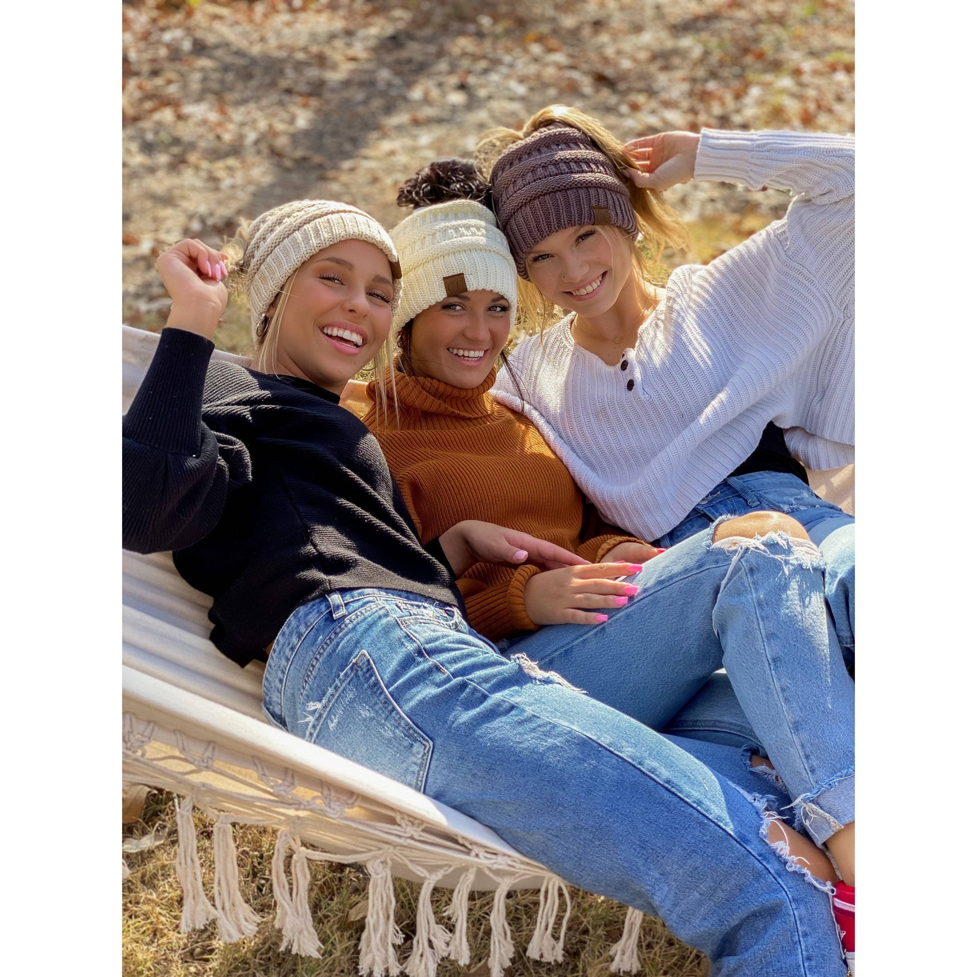 ALL NEW! The original messy bun beanie now comes with a warm LINING! This CC beanie tail beanie allows you to wear your favorite head gear on a cold day with a soft and cozy fuzzy lining, while pulling your hair off your ears and neck! It features an elastic opening in the middle to keep the beanie in place without slipping! This beanie is EXCLUSIVE to ccbeanie.com and supplies are limited!