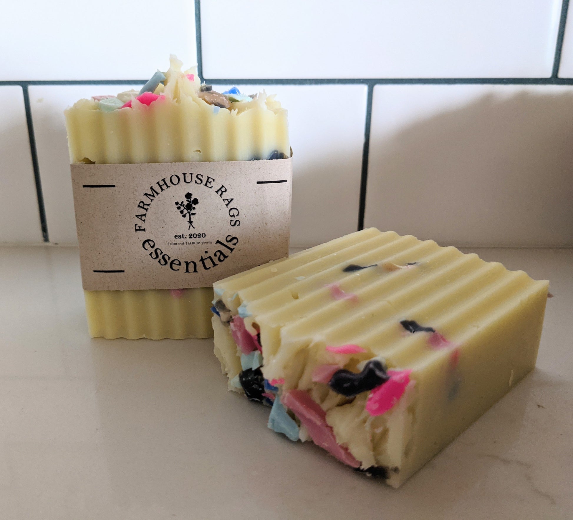 Our handmade farmhouse soap is perfect for dry, damaged, sensitive skin. All natural ingredients including shea butter, olive oil, coconut oil, and hemp oil to name a few. Each bar has it's own unique scent and nourishing properties.