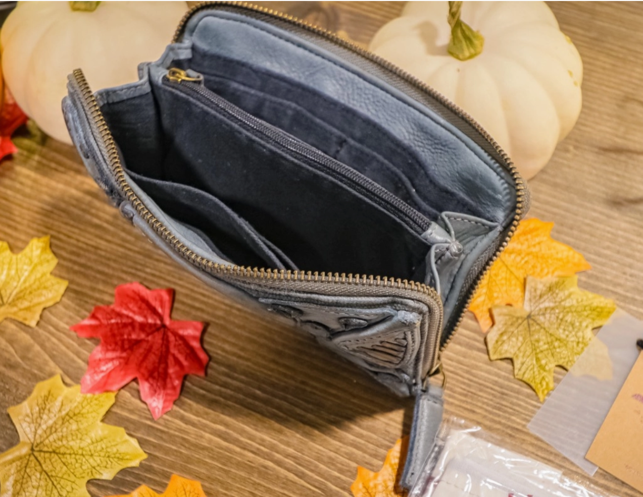 Via wallet is a symbol of happiness within. Irrespective of the bag you carry, the lively color and design of Via will remind you of the bright side of life. Via comes in beige and grey color. Good to keep a lot of credit cards and currency. Something all girls would love to carry. Technical Details 11×19×2 cms. (4.3″ x 7.5″x 0.78″) Washed butter soft cow leather. Weighs 0.210kg (0.44 lb.) Equestrian grade brass hardware. External Compartment- 1×Top full zip closure. Internal Compartment- 1×Interior zipper pocket. 4×Large slip-in compartments. 8×interior credit card slots.