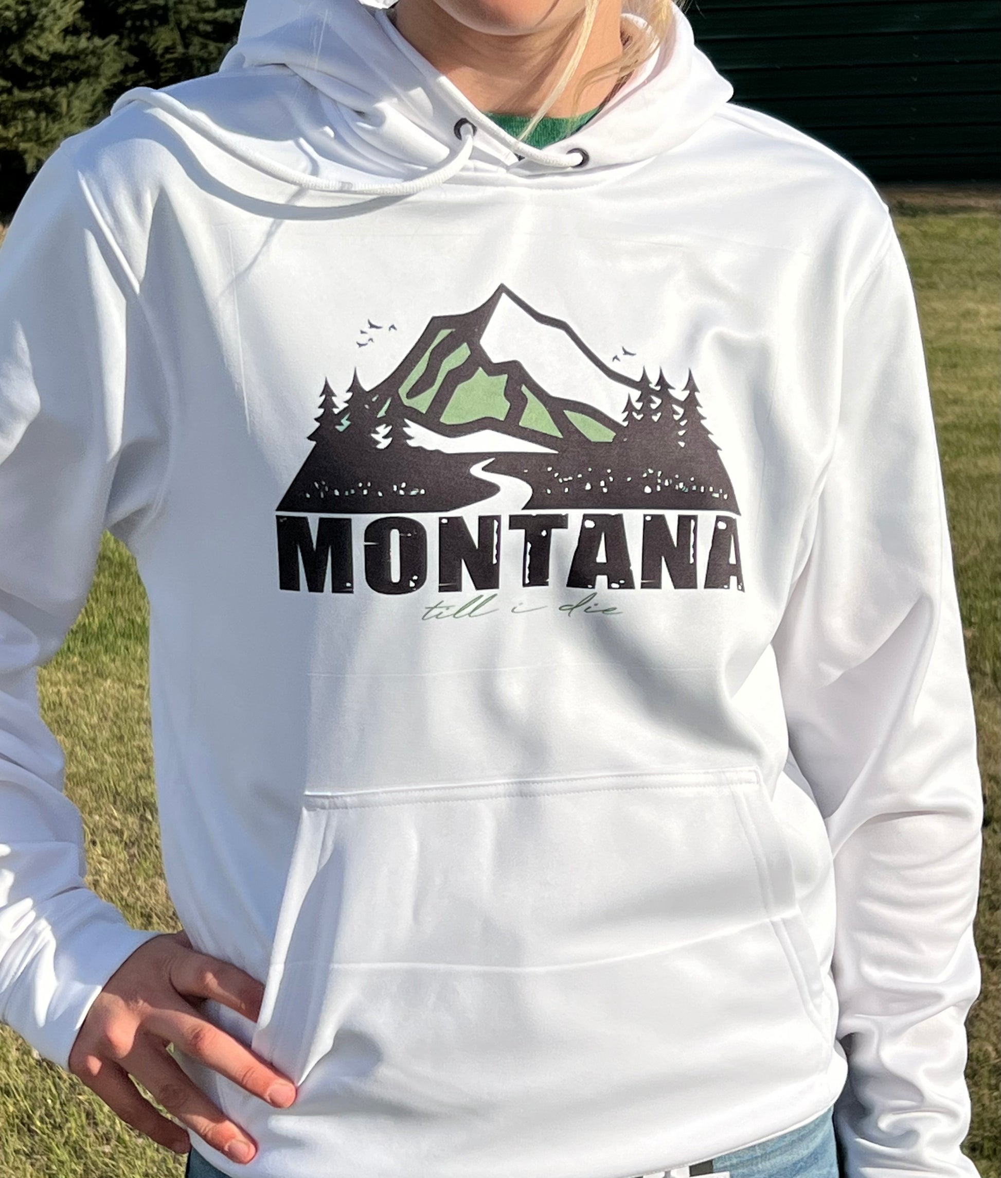 Show your Appreciation for the Big Sky State in this handmade Montana Till I Die hooded sweatshirt.