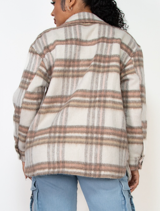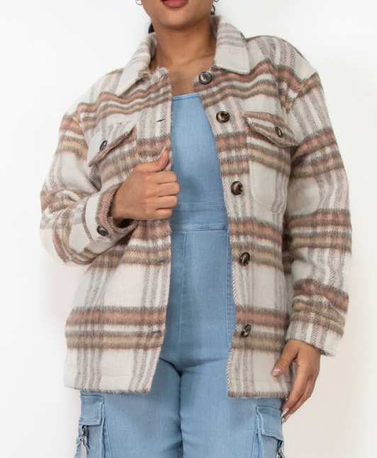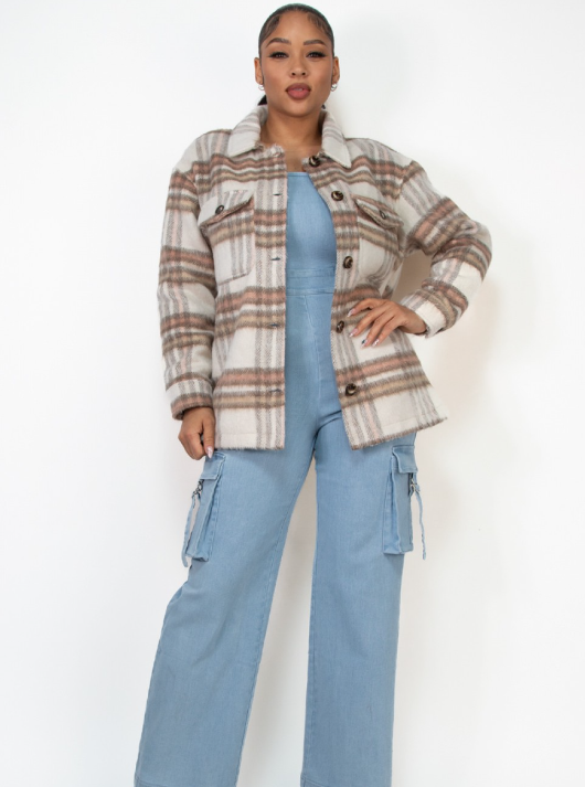 This woven casual couture jacket in a classic plaid pattern offers both style and warmth with its soft, cozy texture that’s perfect for chilly days. The collared neckline and long cuffed sleeves add a structured, timeless appeal, while the button-down closure makes it easy to layer. With functional pockets and a flattering waist-length cut, this jacket comforts you while keeping your look effortlessly polished and snug.