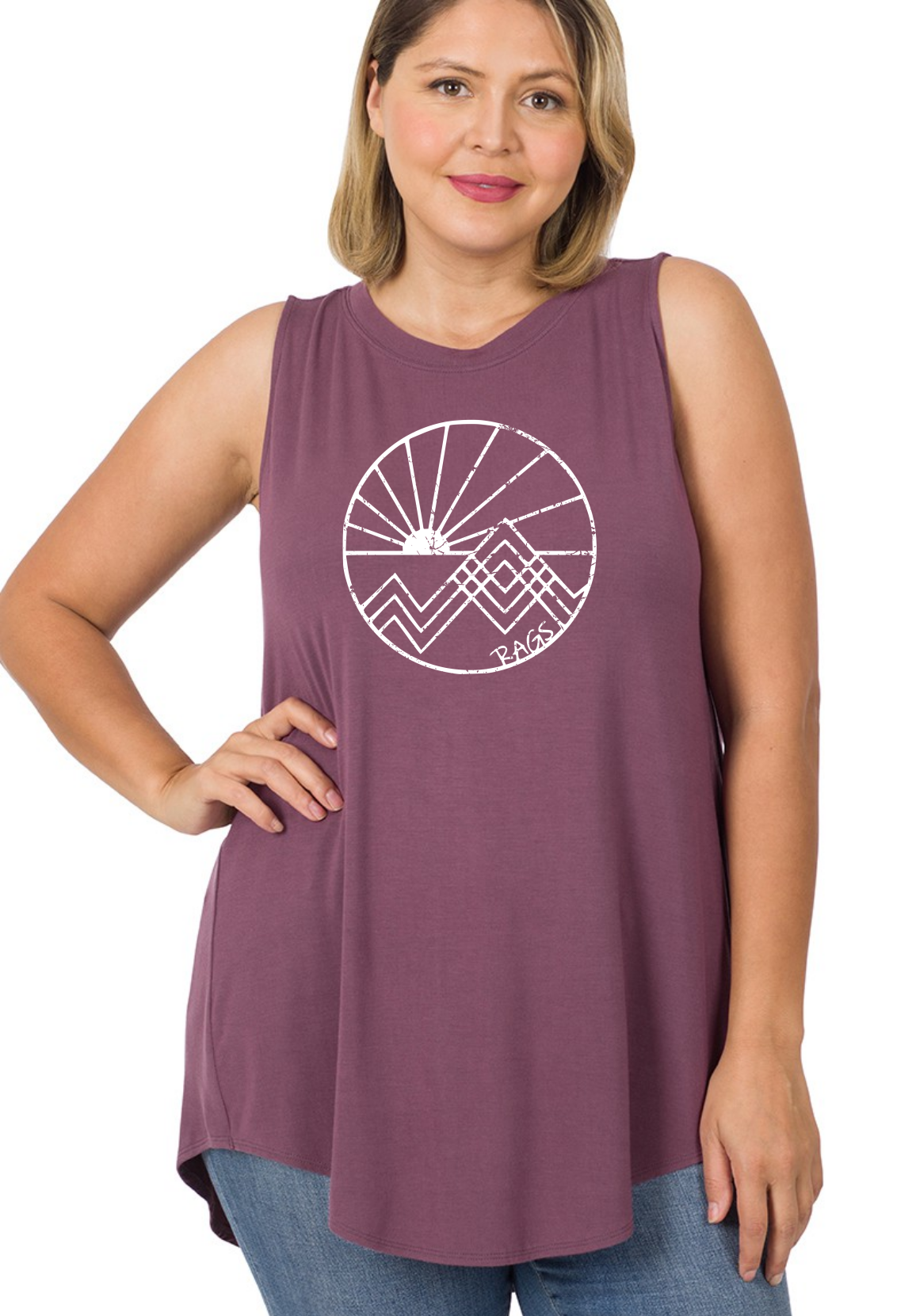 Rag Daytripper Design on our silkiest flowy tank top with stretch! Blackberry Color