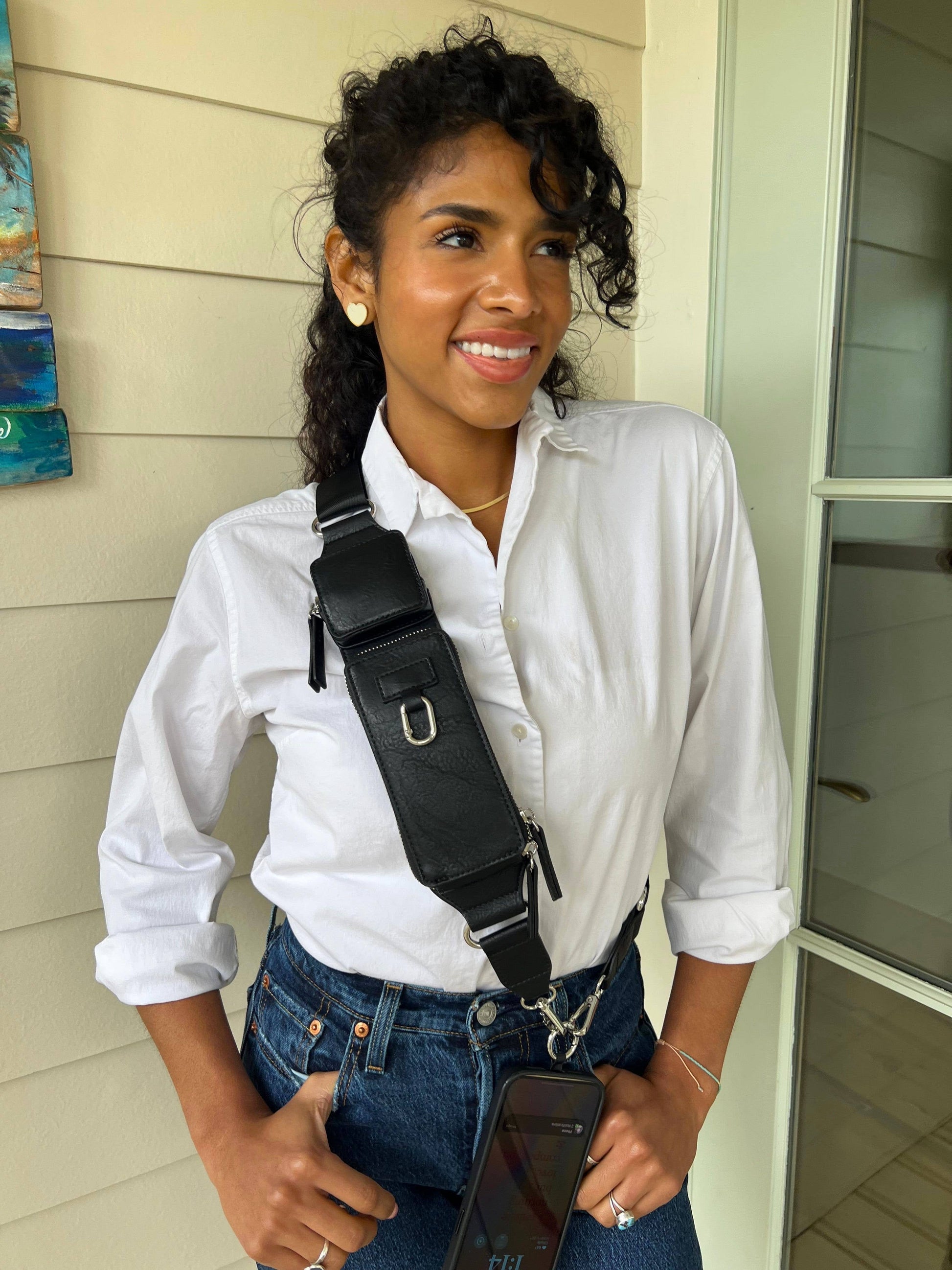 This attractive, extremely comfortable, crossbody strap offers more than meets the eye! The multifunctional design allows your phone to hang at your side hands free, while providing a secure and convenient place to carry your everyday essentials.